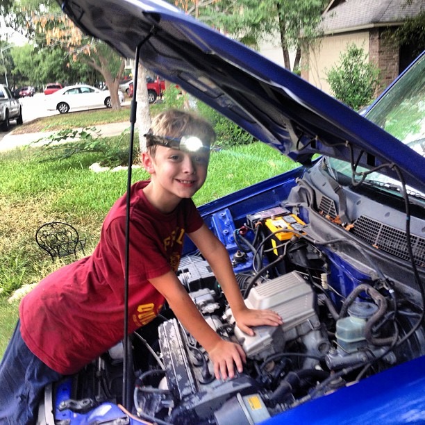 My A1 assistant changing the alternator today #ilovemykids #atx (at casa de Cazadore)