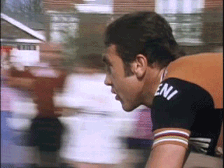 Eddy Merckx hitting warp speed at the 1976 Paris-Roubaix