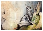 Rubis is a French artist who uses several techniques to create beautiful pictures of fantastic creatures. In addition to watercolor and ink, she also developed a technique called O-Ka-Fee based on painting with coffee.