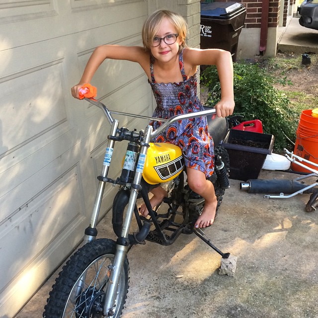 There might be hope for motorcycles in my pride yet, look at those elbows!!! #yz80 #yamaha #mypride #graceisabelle (at Casa De Cazadore)