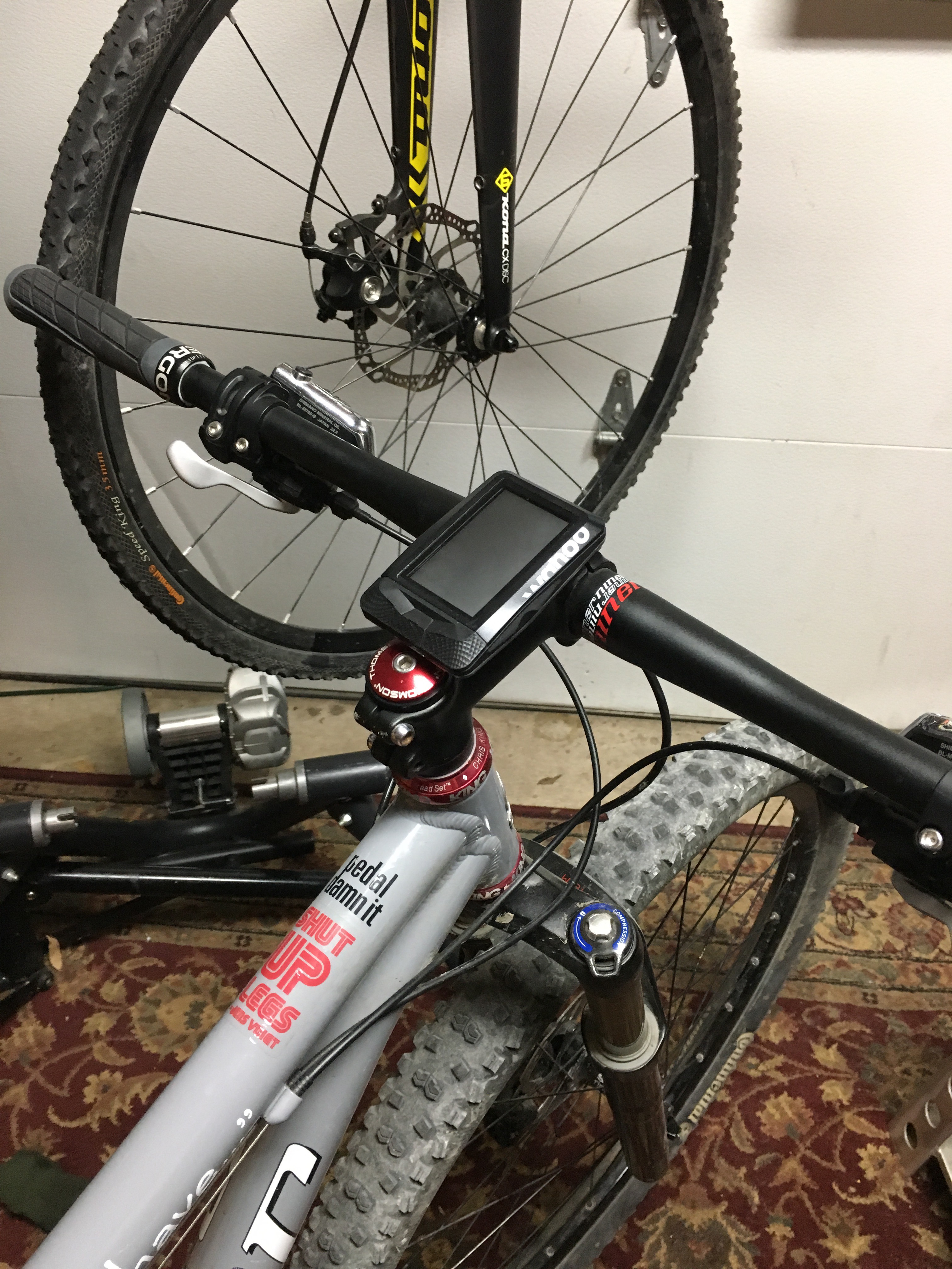 So I thought it would be great to have it right on top of my stem as I like the location of the stem mount that came with the ELEMNT but not the fact that it was held on with zip-ties. You can see from the pic that it replaces the thin spacer you’re supposed to have above your stem to prevent crushing (you’re all doing that right??), and it projects forward a little more than half way down my 100mm stem. I put it on the Kona and the whole ride I felt like I was looking back at my stomach. It only sits a centimeter or so further back, but it’s slightly angled up, and that just straight didn’t work.