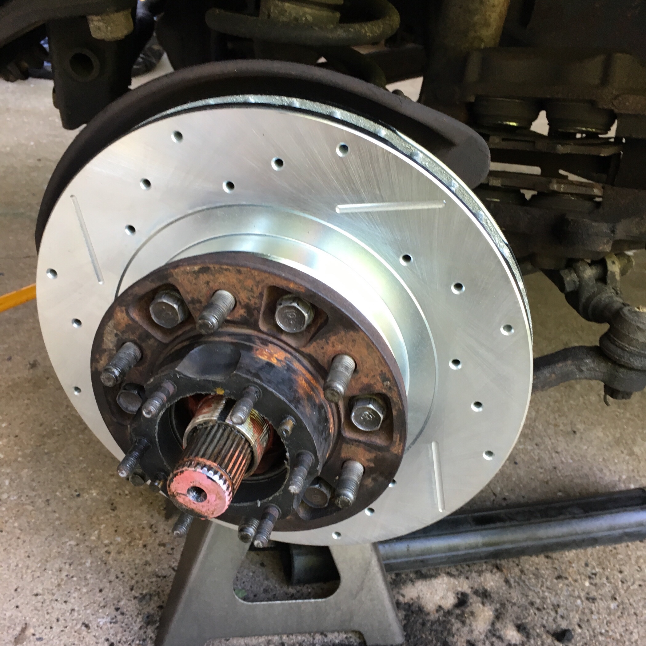 I spent the weekend working on my truck. I originally intended to just do the brake rotors and pads out of expediency, but I found at least two frozen pistons in the drivers caliper, so now I’m doing the full monty.